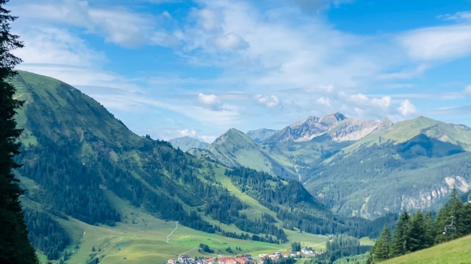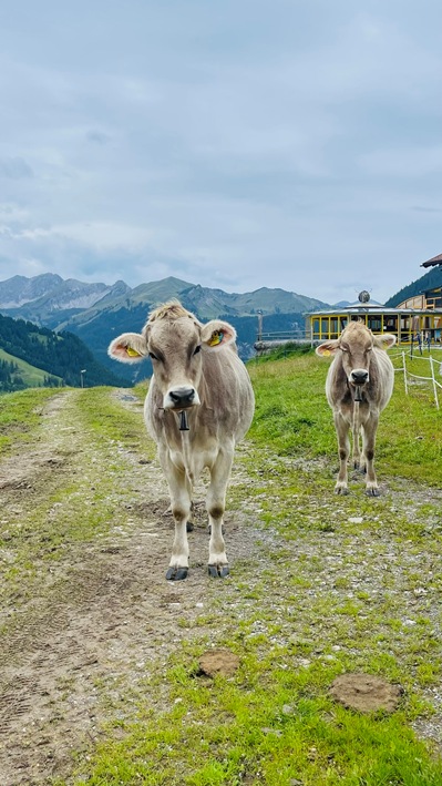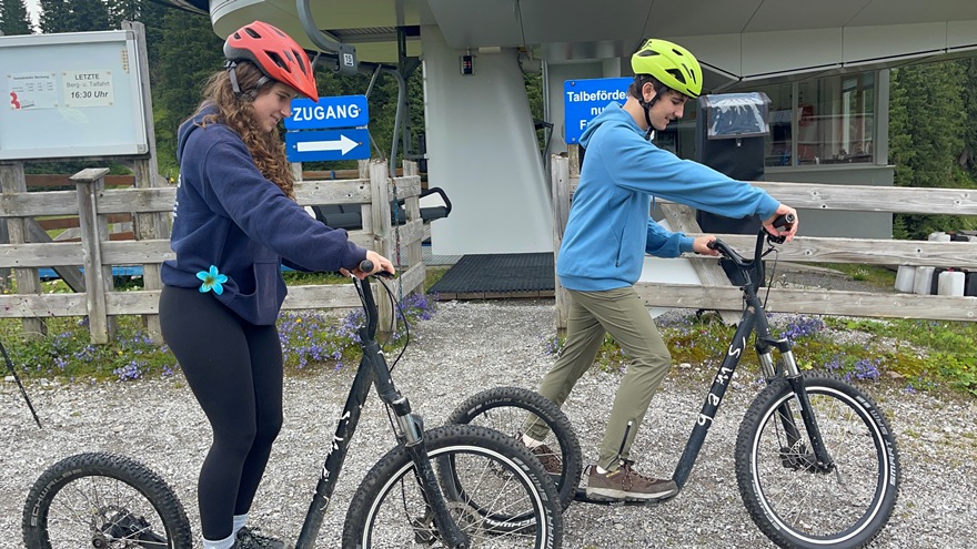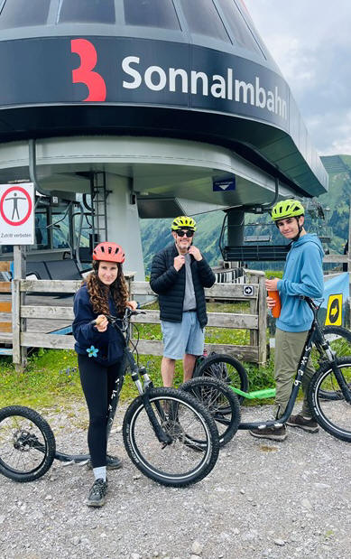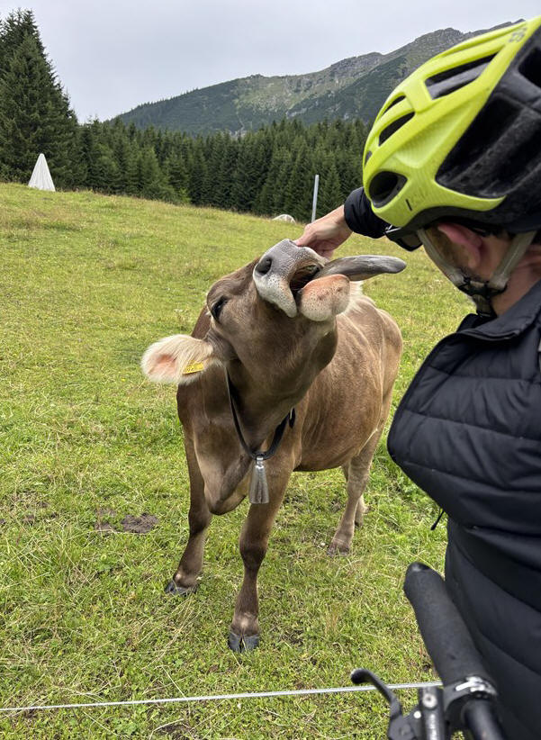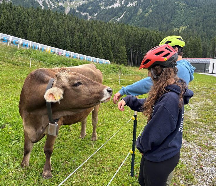 After ten days of rain, we got a sunny day and we went for a hike on the ski slopes of Berwang, which included cow petting, and an interesting 'bike' ride down the slopes.