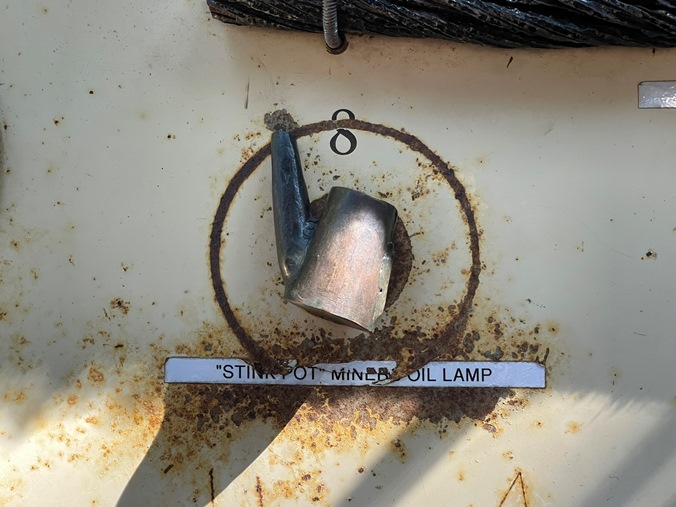 Mines that are now deemed to be too dangerous to even go in. Oil lamps that were mounted on the hats of miners [below-center]