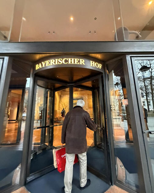 We stayed at Bayerischer Hof where they proudly announced that they had upgraded us to a suite with a balcony. The suite portion was correct, but the balcony?? Another story.