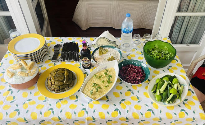 Talin and Lucine bonded in a very sweet way - The garden, where most of the vegetables we had were raised - the amazing spread - Cousins talking - and the girls with Raffi