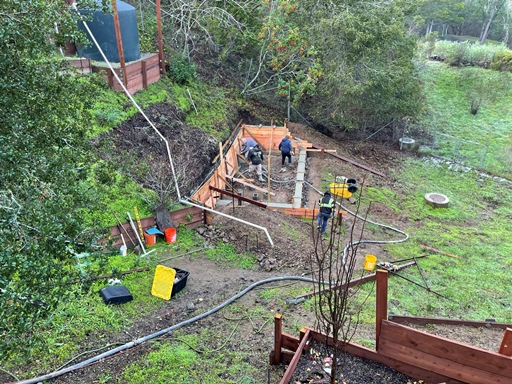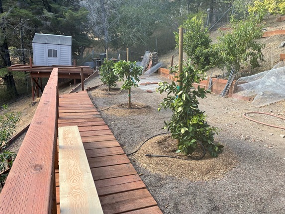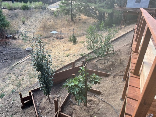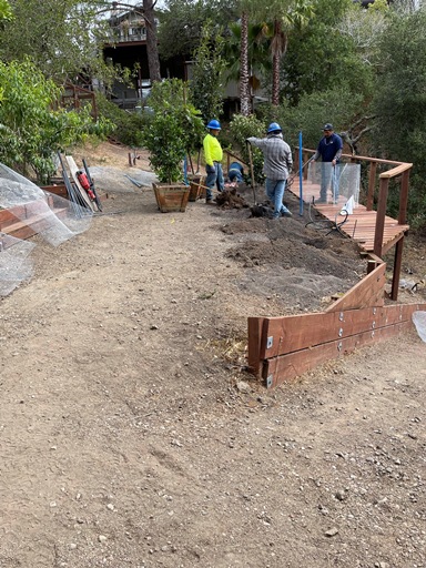 To create a flat planting environment Stephan had to build retaining walls and terraces.He purchased and delivered the wood in his 'truck"!